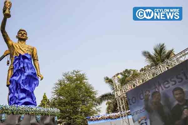 Football superstar Lionel Messi unveiled a 70-foot statue of himself at Salt Lake Stadium in Kolkata on Saturday as part of his visit to India.